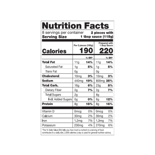 Suivez les instructions de chauffage avant de consommer. Les temps de chauffage peuvent varier en fonction de l'équipement. Le produit est correctement chauffé lorsqu'une température interne de 165°F (74°C) est atteinte.