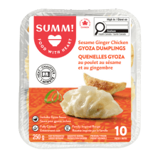 Everybody loves dumplings! Our classic gyoza stuffed with chicken and fresh vegetables get an added depth of flavour from toasted sesame and ginger. Paired with our house-made gyoza sauce, these make a great snack or light meal.